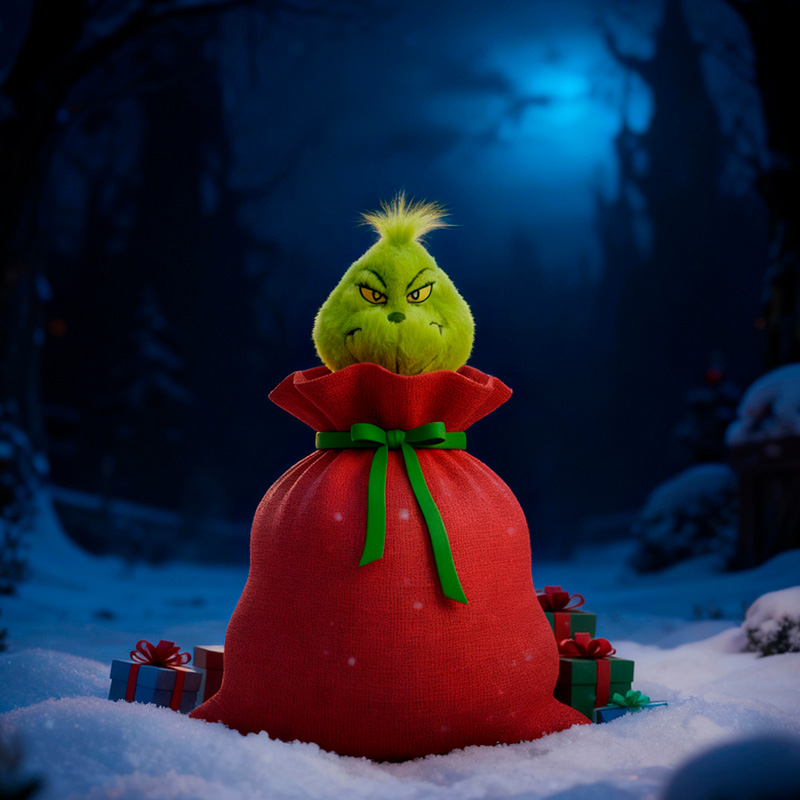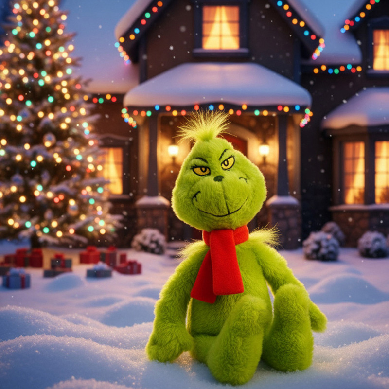 Divertido peluche de Grinch de 30 cm con bufanda.
