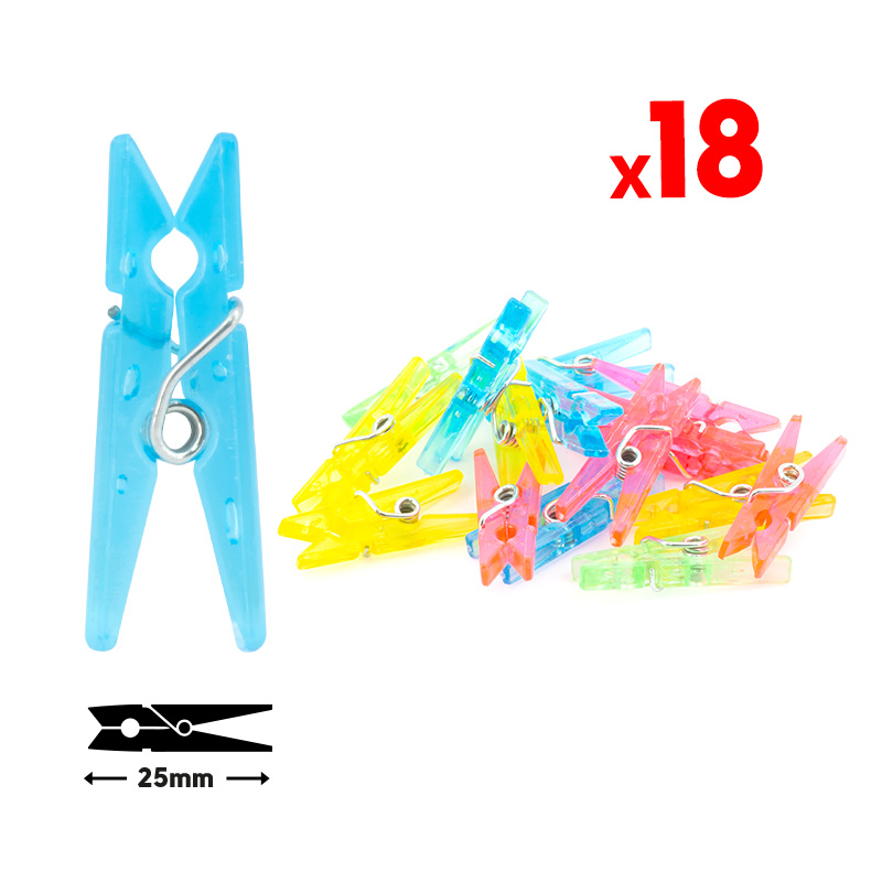 Pinzas de plástico de colores tamaño mini 25 mm 18 uds.